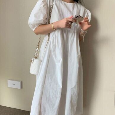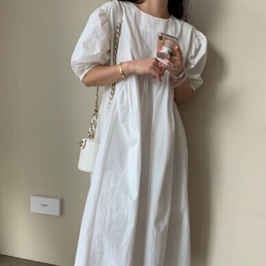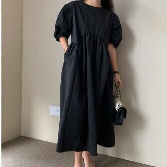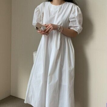 個性的なワンピース、ご紹介します。ラウンドネックで袖ありの半袖タイプで、どんなシーンでも着こなせるアイテムです。切り替えのハイウエストで、脚長効果もあります。フワッとふんわりしたパフスリーブが、女性らしさを引き立てます。ミモレ丈で、体型カバーもできるので、大人女子におすすめです。素材は、綿100%で、シンプルな無地のデザインがおしゃれなアイテムです。カジュアルにもきれいめにも使え、着回し力も抜群です。通勤や通学、お出かけやデート、旅行や休日など、普段着として使えるアイテムです。また、ママやマタニティの方にもおすすめです。夏にぴったりのアイテムで、S〜XLまでの豊富なサイズ展開もうれしいポイント。カラーはブラックとホワイトの2色展開です。お手頃価格で、コスパも抜群!女の子プレゼントにもぴったりです。気軽に取り入れて、おしゃれなスタイルを楽しんでください。
