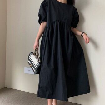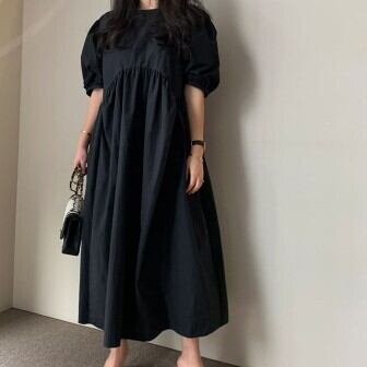 個性的 ワンピース レディース 半袖 袖あり ファッション 個性的 パフ袖 パフスリーブ ラウンドネック ミモレ丈 ハイウエスト 切り替え ふんわり ゆったり ゆる ルーズ ラフ 体型カバー 無地 シンプル 綿 コットン カジュアル おしゃれ お洒落 大人女子 大人可愛い かわいい 可愛い 通勤 通学 学生 お出かけ デート 旅行 休日 普段着 普段使い ママ マタニティ 夏 S M L XL ブラック 黒 ホワイト 女の子プレゼント 安いお得 合わせやすい 低価格 コスパ 値段重視 低予算 インポート