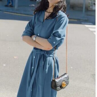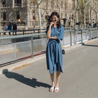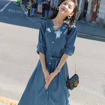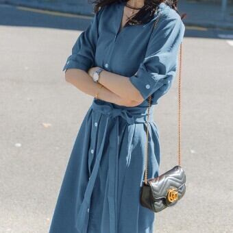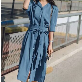 ロング丈でゆったりとしたシルエットのシャツワンピースがおすすめです。ミモレ丈の丈感が大人っぽく、Vネックのデザインでスッキリとした印象を与えます。また、サイドスリットが入っているので動きやすく、夏にぴったりの爽やかなデザインになっています。