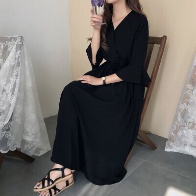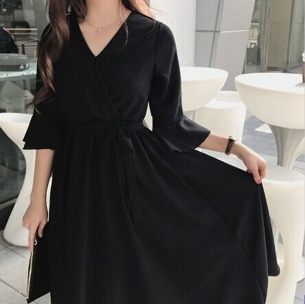 カシュクールワンピース レディース ファッション 個性的 ワンピース フレアワンピース 膝下 ロング ロング丈 袖あり 半袖 5分袖 五分袖 Vネック シフォン ウエストマーク ウエストリボン かわいい 大人可愛い きれいめ シンプル カジュアル 大人 おしゃれ お洒落 大人可愛い 大人女子 無地 春 夏 秋 10代 20代 30代 デート お出かけ 公園デビュー 女子会 休日 着回し 普段使い 重ね着 韓国 韓国系 オルチャン サイズ M L XL 2XL 3XL 4XL 黒 ブラック 女の子プレゼント