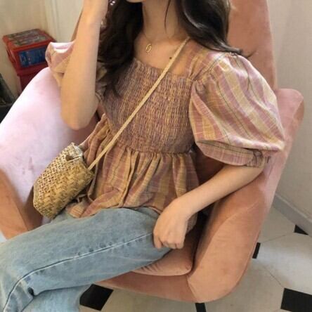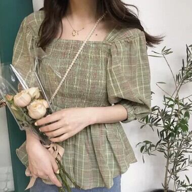 チェック柄ピンチカフスウエストシャツ トップス レディース ファッション 個性的 シャツ ショート 袖あり ボリューム袖 パフスリーブ スクエアネック かわいい 大人可愛い おしゃれ チェック柄 春 夏 10代 20代 OL 学生 デート お出かけ 女子会 休日 着回し 普段使い 韓国 韓国系 オルチャン フリーサイズ 緑 女の子プレゼント 安いお得 合わせやすい 低価格 コスパ 値段重視 低予算 インポート 簡単 ギフト 海外 イメチェン 好感度 イメージアップ 外国 注目 大特価 人気 新作 話題