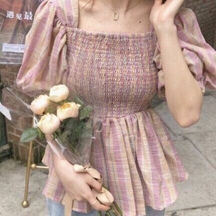 フェミニンさとクールさを兼ね備えた、チェック柄のピンチカフスウエストシャツ。スクエアネックでデコルテを綺麗に見せてくれます。また、ピンチカフスとボリューム袖のデザインで、個性的で目を惹く印象を与えてくれます。
