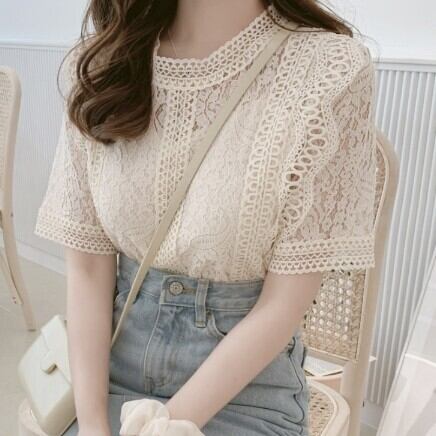トップス Tシャツ シャツ ブラウス 袖あり レディース ファッション 個性的 半袖 ラウンドネック レース 透け感 薄手 かわいい 大人可愛い おしゃれ レトロ 大人可愛い ラブリー 無地 レース 春 夏 2021 10代 20代 30代 デート 女子会 韓国系 モテ サイズ S M L XL くすみカラー 春カラー ドレス トレンドスタイル モテ 主役級 存在感 ホテル ガーデン レストラン