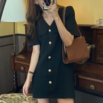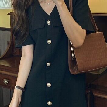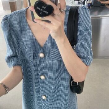 半袖ワンピース パール ミニ ショート丈 スカート レディース ファッション 個性的 Vネック ゆったり レトロ クール きれいめ カッコイイ カジュアル シンプル 大人 スタイルアップ お姉さん 着痩せ 着回し 脚長 ワンサイズ フリーサイズ おしゃれ 春 夏 ブルー ブラック 青 黒 大人可愛い 普段使い デイリー使い 休日 お出かけ デート 女子会 存在感 主役級 こなれ感 韓国 海外トレンド インスタ映え 大人気 流行 10代 20代 30代 40代 おすすめ コーデ 洋服 似合う 着回し 無難