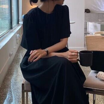 半袖ワンピース ロング マキシ丈 スカート ゆったり 無地 レディース ファッション 個性的 ウエストマーク レトロ クール きれいめ キュート プリティ シンプル ハイウエスト 大人 スタイルアップ お姉さん 着痩せ 着回し 脚長 ワンサイズ フリーサイズ おしゃれ 夏 サマー ブラック 黒 ベージュ 大人可愛い 普段使い デイリー使い 休日 お出かけ デート 女子会 存在感 主役級 こなれ感 韓国 海外トレンド インスタ映え 大人気 流行 10代 20代 30代 40代 おすすめ コーデ 洋服 似合う
