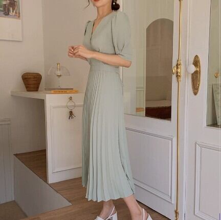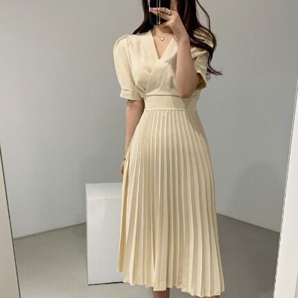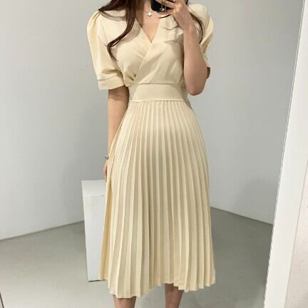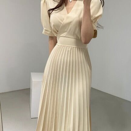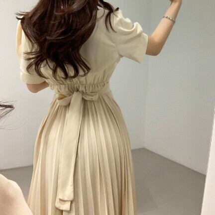 半袖ワンピース ロング ミモレ丈 プリーツスカート レトロ レディース ファッション 個性的 無地 シンプル クール きれいめ キュート プリティ シンプル ハイウエスト 大人 スタイルアップ お姉さん カワイイ 着痩せ 着回し 脚長 S M L XL おしゃれ 夏 サマー イエロー ブルー 黄色 青 大人可愛い 普段使い デイリー使い 休日 お出かけ デート 女子会 存在感 主役級 こなれ感 韓国 海外トレンド インスタ映え 大人気 流行 10代 20代 30代 40代 おすすめ コーデ 洋服 似合う