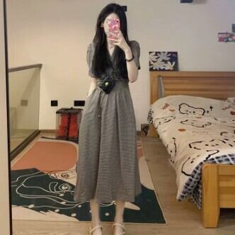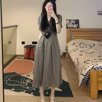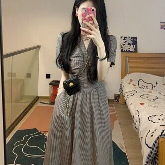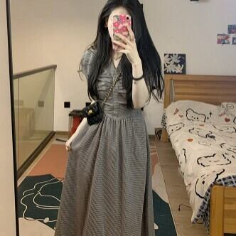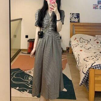 半袖ワンピース フレア チェック柄 Aライン レディース ファッション 個性的 Vネック ハイウエスト レトロ 清楚 ロング ミモレ丈 楽ちん ゆったり 上品 ガーリー プリティ シンプル スタイルアップ お姉さん カワイイ 着痩せ 着回し 脚長 S M L 大きいサイズ おしゃれ 夏 サマー グレー 灰色 大人可愛い 普段使い デイリー使い 休日 お出かけ デート 女子会 存在感 主役級 こなれ感 韓国 海外トレンド インスタ映え 大人気 流行 10代 20代 30代 40代 おすすめ コーデ 洋服