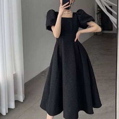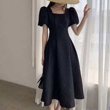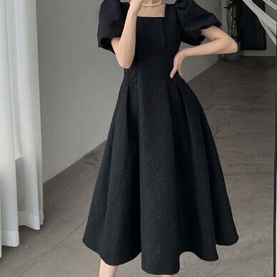 レディース ファッション 個性的 ロングワンピース スクエアネック パフスリーブ ミモレ丈 半袖 バルーンスリーブ ジャガード調 ブラック 花柄 フレアワンピース ダーツ ハイウエスト きれいめ 上品 華やか 学生 ゆったり お姉さん カワイイ ガーリー キュート 着痩せ 着回し 脚長 おしゃれ 夏 サマー 大人可愛い 普段使い デイリー使い 休日 お出かけ デート 女子会 存在感 主役級 こなれ感 韓国 海外トレンド インスタ映え 大人気 流行 10代 20代 30代 40代 おすすめ コーデ 洋服