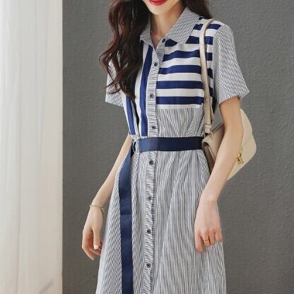 レディース ファッション 個性的 ロングシャツワンピース 半袖 襟付き 切り替え ボーダー ストライプ ミモレ丈 スリット クール ブルー系 ウエストマーク 上品 シック ウエストマーク 無地 キュート 着回し ゆったり スタイリッシュ モテる 着痩せ トップス おしゃれ デート 大人可愛い お出かけ 存在感 こなれ感 抜け感 普段使い デイリー使い 休日 主役級 インスタ映え 韓国 海外トレンド 大人気 高見え 流行 10代 20代 30代 40代 おすすめ コーデ 洋服 似合う 着回し 無難