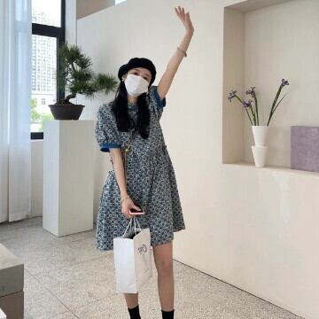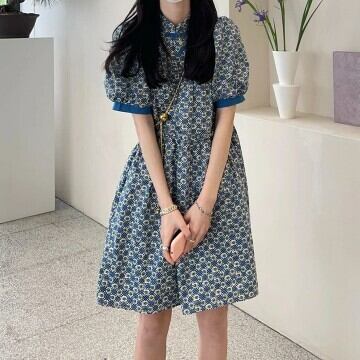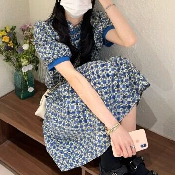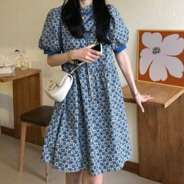半袖ワンピース フレア 柄 パフスリーブ レトロ 清楚 シック膝丈 レディース ファッション 個性的 ミニ ウエストマーク ゆったり 上品 エレガント シンプル お姉さん カワイイ 着痩せ 着回し 脚長 S M L 大きいサイズ おしゃれ 夏 サマー ブルー 青 大人可愛い 普段使い デイリー使い 休日 お出かけ デート 女子会 存在感 主役級 こなれ感 韓国 海外トレンド インスタ映え 大人気 流行 10代 20代 30代 40代 おすすめ コーデ 洋服 似合う 着回し 無難 インポート 韓国スタイル