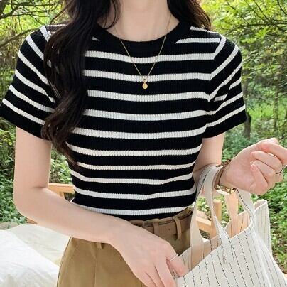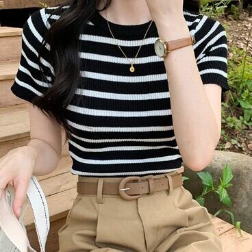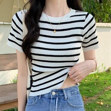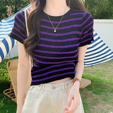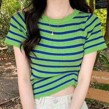 Tシャツ ニット風 プルオーバー 半袖 トップス レディース レディース ファッション 個性的 カットソー ブラック グリーン レッド ホワイト パープル 春 夏 クルーネック ボーダー カッコイイ カジュアル 袖あり ラウンドネック 大人可愛い シンプル カジュアル 大人 おしゃれ かっこいい ラフ メンズライク ボーイッシュ 主役級 存在感 ボーダー 春 夏 10代 20代 30代 デート お出かけ 着回し 普段使い 重ね着 韓国 オルチャン モテ プチプラ トレンド 流行 インスタ映え