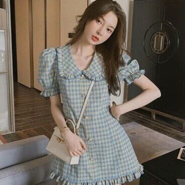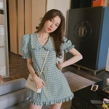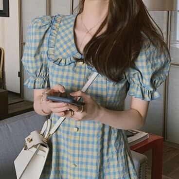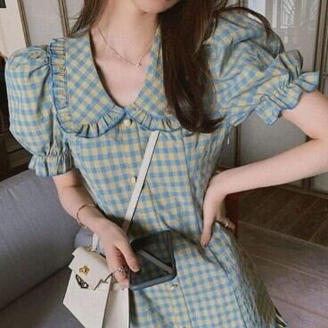 襟付きミニワンピース ドレス 半袖 ラージカラー 丸襟 レディース ファッション 個性的 ギンガムチェック 襟コンシャス 上品ウエストマーク ギャザー ハイウエスト シック エレガント きれいめ シンプル ゆったり お姉さん カワイイ 着痩せ 着回し 脚長 ワンサイズ フリーサイズ おしゃれ 春 夏 大人可愛い 普段使い デイリー使い 休日 お出かけ デート 女子会 存在感 主役級 こなれ感 海外トレンド 大人気 流行 おすすめ コーデ 洋服 似合う 着回し 無難 インポート 韓国スタイル トレンド