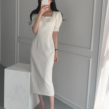 レディース ファッション 個性的 半袖ワンピース シンプル スリット スクエアネック ミモレ丈 おすすめ コーデ タイト 無地 上品 ロング シック カッコイイ キュート エレガント きれいめ シンプル ゆったり お姉さん カワイイ 着痩せ 着回し 脚長 S M L おしゃれ 夏 ホワイト ライトブルー 白 水色 大人可愛い 普段使い デイリー使い 休日 お出かけ デート 女子会 存在感 主役級 こなれ感 韓国ファッション 海外トレンド インスタ映え 大人気 流行 10代 20代 30代 40代 おすすめ