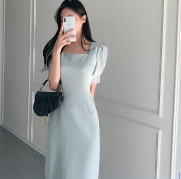 予想以上のコーディネートが楽しめるシンプルで個性的なミモレ丈ワンピース。シンプルだけど根強い人気のスクエアネックが、大人っぽくエレガントな印象を与えます。