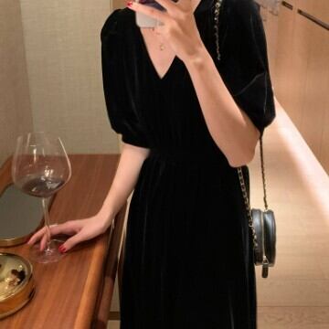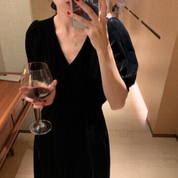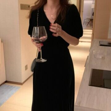 半袖ワンピース Vネック レディース ファッション 個性的 ロング 無地 セクシー 上品 ロング ガーリー プリティ キュート フレア エレガント きれいめ シンプル ミモレ丈 ゆったり お姉さん カワイイ 着痩せ 着回し 脚長 ワンサイズ フリーサイズ おしゃれ 夏 サマー ブラック 黒 大人可愛い 普段使い デイリー使い 休日 お出かけ デート 女子会 存在感 主役級 こなれ感 韓国 海外トレンド インスタ映え 大人気 流行 10代 20代 30代 40代 女の子プレゼント 安いお得 合わせやすい