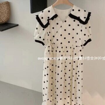 半袖ワンピース ロング ドット レディース ファッション 個性的 水玉 大きい襟 上品 ロング ガーリー プリティ キュート フレア エレガント きれいめ シンプル ミモレ丈 ゆったり お姉さん カワイイ 着痩せ 着回し 脚長 ワンサイズ フリーサイズ おしゃれ 夏 サマー ベージュ 大人可愛い 普段使い デイリー使い 休日 お出かけ デート 女子会 存在感 主役級 こなれ感 韓国 海外トレンド インスタ映え 大人気 流行 10代 20代 30代 40代 女の子プレゼント 安いお得 合わせやすい 低価格