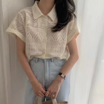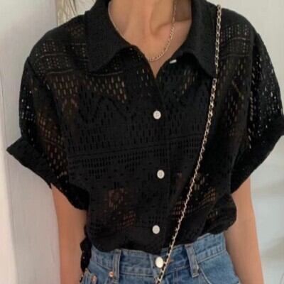 2色 シャツ ブラウス 半袖 レース 透け感 クール カッコイイ ガーリー 上品 シック レディース ファッション 個性的 無地 キュート 着回し ゆったり スタイリッシュ モテる 着痩せ トップス ワンサイズ フリーサイズ ブラック ホワイト 黒 白 おしゃれ デート 大人可愛い お出かけ 存在感 こなれ感 抜け感 普段使い デイリー使い 休日 主役級 インスタ映え 韓国 海外トレンド 大人気 高見え 流行 10代 20代 30代 40代 女の子プレゼント 安いお得 合わせやすい 低価格 コスパ 値段重