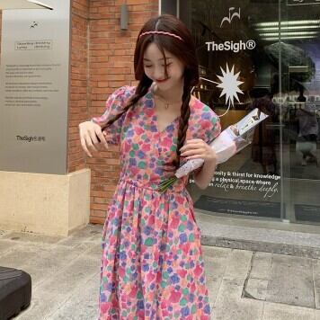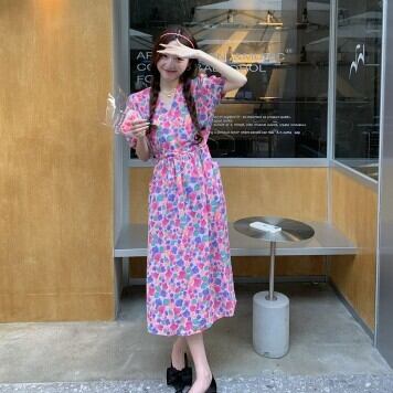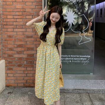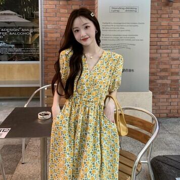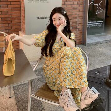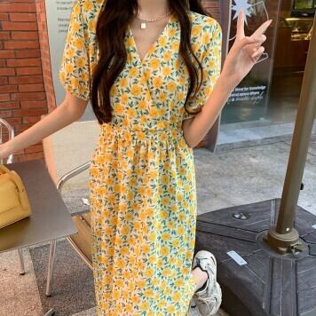 花柄ワンピース ロング丈 Vネック レディース ファッション 個性的 ミモレ丈 半袖 きれいめ 上品 華やか 学生 ゆったり お姉さん カワイイ ガーリー キュート 着痩せ 着回し 脚長 ワンサイズ フリーサイズ おしゃれ 夏 サマー イエロー ピンク 黄色 大人可愛い 普段使い デイリー使い 休日 お出かけ デート 女子会 存在感 主役級 こなれ感 韓国 海外トレンド インスタ映え 大人気 流行 10代 20代 30代 40代 プチプラ 洋服 似合う 着回し 無難 インポート 韓国スタイル トレンド