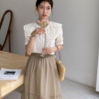 シャツ ブラウス 半袖 レディース 春 秋 個性的 トップス 襟コンシャス ラージカラ― パンチングレース レトロ 可愛い 花 フラワー ユニーク 韓国 ファッション 袖あり 襟あり カジュアル 10代 20代 ママ OL 学生 フリーサイズ かわいい 大人可愛い きれいめ カジュアル 大人 おしゃれ レトロ こなれ感 ラブリー キュート ガーリー 主役級 存在感 着回し 普段使い 重ね着 モテ トレンド 流行 インスタ映え 洋服 似合う 着回し 無難 インポート 韓国スタイル トレンドスタイル モテ