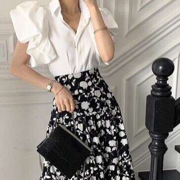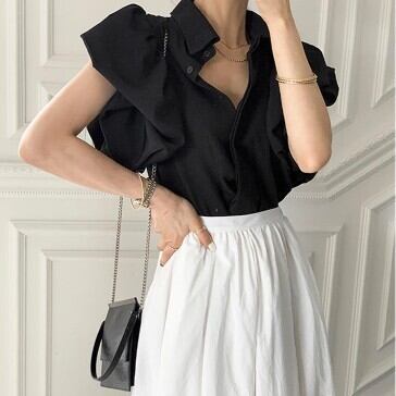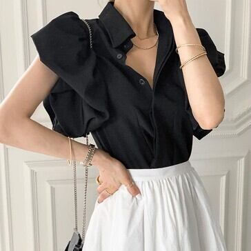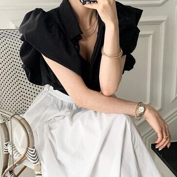 ブラウス シャツ フリル 襟付き レディース ファッション バルーンスリーブ ボリューム袖 大人可愛い おしゃれ 春夏 トップス 上品 きれいめ 半袖 着回し ガーリー ラブリー 可愛い スタイリッシュ ブラック ホワイト 春 秋 冬 おしゃれ デート 大人可愛い お出かけ 存在感 こなれ感 抜け感 女子会 普段使い デイリー使い 休日 主役級 インスタ映え 韓国 海外 人気 個性的 白トップス 黒 10代 20代 30代 洋服 似合う 着回し 無難 インポート 韓国スタイル トレンドスタイル モテ 主役