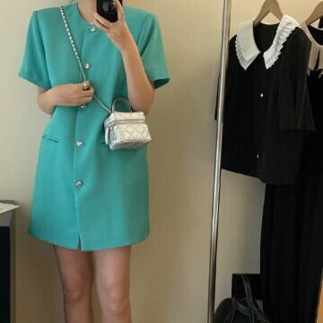 ワンピ ワンピース スカート ミニ ショート丈 半袖 ハート ボタン レディース ファッション 個性的 華やか シック シンプル きれいめ 華やか ゆったり カワイイ 脚長 着痩せ 着回し ワンサイズ フリーサイズ おしゃれ 春 夏 スプリング サマー エメラルドグリーン ブラック 緑 黒 大人可愛い 普段使い デイリー使い 休日 お出かけ デート 女子会 存在感 主役級 こなれ感 韓国 海外トレンド インスタ映え 大人気 流行 10代 20代 30代 40代 プチプラ 洋服 似合う 着回し 無難