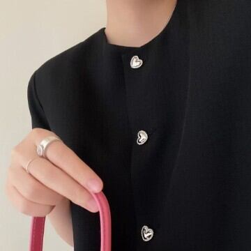 ハートボタンが目を引くデザインもポイント。上品で可愛らしい印象を与え、主役級の存在感抜群。色もエメラルドグリーンとブラックの2色展開で、どちらも大人っぽく、きれいめに着こなせます。