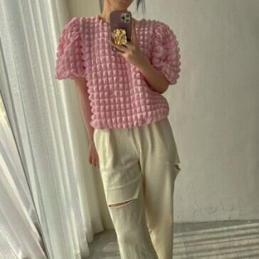 トップス モコモコ ビックシルエット レディース ファッション 半袖 お姉さん 個性的 着回し 可愛い ゆったりめ きれいめ プリティ パフスリーブ スタイリッシュ モテる 着痩せ ワンサイズ フリーサイズ パープル イエロー ピンク 紫 黄色 春 夏 スプリング サマー おしゃれ デート 大人可愛い お出かけ 存在感 こなれ感 抜け感 普段使い デイリー使い 休日 主役級 インスタ映え 韓国 海外トレンド 大人気 高見え 流行 10代 20代 30代 40代 プチプラ 洋服 似合う 着回し 無難