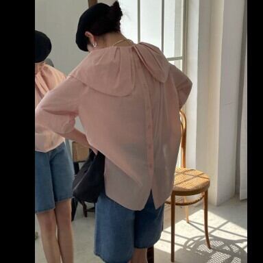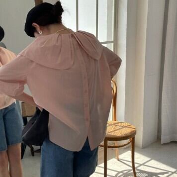 ビッグカラー 半袖 シャツ ブラウス ピンク黒 レディース ファッション 個性的 白 無地 ラウンド 丸い 襟 薄手 透け感 春 夏 トップス 袖あり レトロ 可愛い 花びら 大きな襟 おしゃれ 韓国 カジュアル バックシャン 背中ボタン ブラック ホワイト こなれ感 抜け感 ラフ 重ね着 双子 お揃い ゆるかじ 長めトップス ロング丈 ラブリー ガーリー フェミニン 10代 20代 30代 秋 涼しげ 海外 トレンド 人気 デイリー 映える デート お出かけ 女の子プレゼント 安いお得 合わせやすい