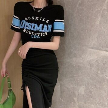 タイトワンピース 半袖 膝丈 スリット カジュアル Tシャツ レディース ファッション 個性的 ワンピ ミモレ丈 ロゴ プリント 黒 白 無地 カッコイイ スポーティ アクティブ カワイイ ボーイッシュ マニッシュ セクシー ワンピドレス おしゃれ 春 夏 ワンピース グレー ブラック 灰色 黒 大人可愛い モテコーデ デート 女子会 普段使い デイリー使い 休日 お出かけ 存在感 主役級 こなれ感 韓国 海外トレンド 大人気 高見え 流行 10代 20代 30代 40代 女の子プレゼント 安いお得