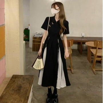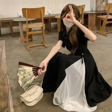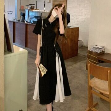 半袖 ワンピース ロング丈 レディース 個性的 黒 白 バイカラー フレア ワンピ ドレス カジュアル Aライン 襟付き 大人可愛い かっこいい 透け感 切り替え モノトーン 春 夏 ワンピース ホワイト ブラック チャイナ レトロ 大人可愛い S M L ラブリー おしゃれ カジュアル こなれ感 春 夏 秋 10代 20代 30代 お出かけ お揃い 双子 韓国 スタイル ファッション コーデ デート 人気 大人カジュアル クール トレンド 主役級 存在感 スタイル 個性的 女の子プレゼント 安いお得