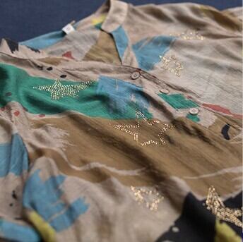 このブラウスの背景には、デザイナーが海外旅行で巡った様々な場所からインスピレーションを受けて生まれたコンセプトがあります。ユニークなプリントや色使いは、まさに旅先での発見が反映されたもの。今度はあなたもこのブラウスを着て、自分だけの旅を満喫してみてはいかがでしょうか。