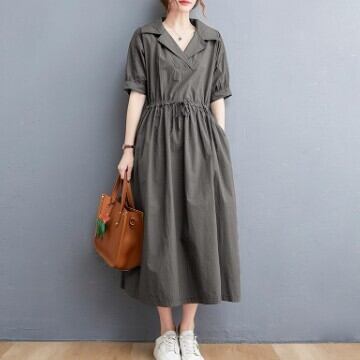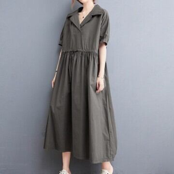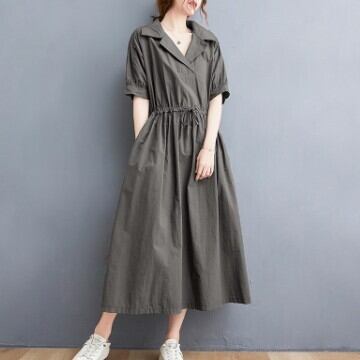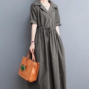 シャツ ワンピース ロング ミモレ丈 半袖 Vネック 襟付き ゆったり 大人っぽ シンプル 無地 ワンピ 春 夏 カワイイ カッコイイ ウエストマーク レディース 脚長 着痩せ 大きいサイズ L XL おしゃれ 春 夏 スプリング サマー カーキ ブラック 緑 黒 大人可愛い モテコーデ デート 女子会 普段使い デイリー使い 休日 お出かけ 存在感 主役級 こなれ感 個性的 韓国ファッション 海外トレンド 大人気 高見え 流行 10代 20代 30代 女の子プレゼント 安いお得 合わせやすい