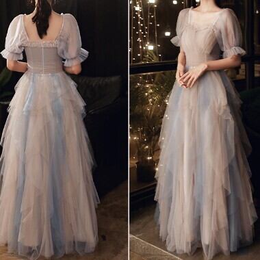 ロング ドレス パーティードレス 個性的 レディース バイカラー ファッション 袖あり ニュアンス くすみカラー プリンセス お姫様 パフスリーブ 結婚式 二次会 お呼ばれ フォーマル 演奏会 ピアノ 発表会 ドレス ワンピース 大人 かっこいい エレガント 清楚 お嬢様 上品 レトロ ガーリー ラブリー 主役級 衣装 カラードレス 10代 20代 XS S M L XL 2XL 3XL 大きいサイズ お呼ばれ パーティー 海外 韓国 dress ロング丈 半袖 エアリー ふんわり チュール 妖精 女の子