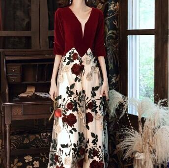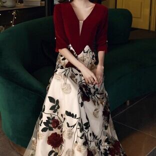 ロング ドレス パーティードレス レディース ファッション 個性的 赤 花柄 袖あり バイカラー おしゃれ 結婚式 二次会 お呼ばれ フォーマル 演奏会 ピアノ 発表会 ドレス 大人 大人可愛い フェミニン 薔薇 ローズ 刺繍 フラワー フローラル チュール 五分袖 Vネック 半袖 ユニーク ドッキング 切り替え 派手 華やか 目立つ XS S M L XL 2XL 3XL 大きいサイズ お呼ばれ パーティー イベント 舞台 モデル 撮影 衣装 海外 韓国 dress イブニング カラードレス ロング丈