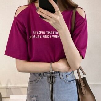 Tシャツ レディース オフショル 肩出し トップス 春 夏 カジュアル カッコイイ ラフ キュート 個性的 半袖 ロゴ パープル オレンジ ブルー 紫 青 大きいサイズ XL 2XL 3XL 4XL 春 夏 スプリング サマー カワイイ おしゃれ デート お出かけ 存在感 こなれ感 抜け感 女子会 普段使い デイリー使い 休日 主役級 インスタグラマー インスタ映え 韓国ファッション 海外トレンド オルチャン 10代 20代 30代 40代 プチプラ 女の子 プレゼント 安いお得 お得 合わせやすい