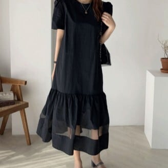 あなたは、ロングワンピースの魅力にとりつかれること間違いなし!パフスリーブや裾フレア、ギャザーなど、女性らしさが全開のデザインに仕上げました。シースルーとシフォン素材の組み合わせが、優雅な印象を与えます。