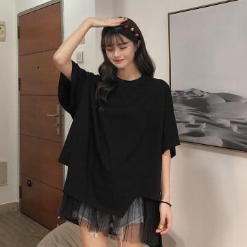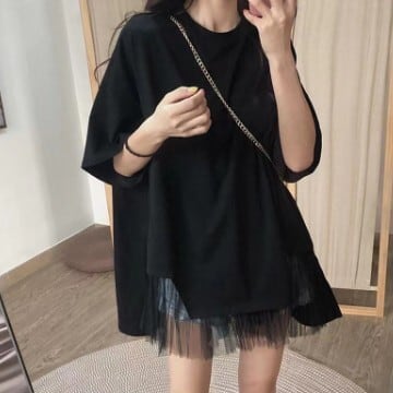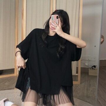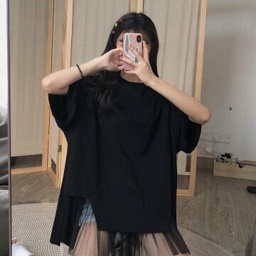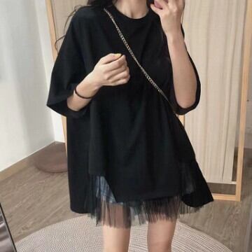 トップス レディース Tシャツ ロング丈 レース 透け感 黒 白 無地 大人可愛い オーバーサイズ 大きいサイズ XL 2XL 3XL 4XL おしゃれ ミニワンピ シースルー 半袖 5分袖 プリーツ 個性的 ガーリー キュート ルーズ ゆったり ラウンドネック 襟なし ブラック ホワイト こなれ感 インスタ映え アイテム 韓国 ファッション 大きいサイズ プラスサイズ ラフ カジュアル コーデ お出かけ 普段使い 主役級 10代 20代 春 夏 抜け感 オシャレ 袖あり 女の子 プレゼント 安い お得