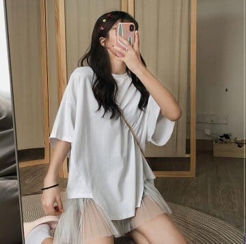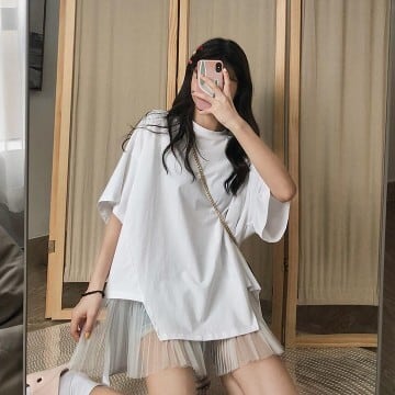 シースルーのプリーツが可愛い、オーバーサイズのTシャツですw