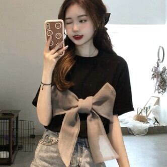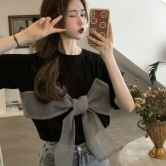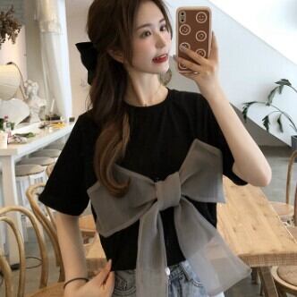 トップス レディース Tシャツ 半袖 襟なし ビッグリボン かわいい おしゃれ 存在感 黒 白 カットソー ラウンドネック 薄手 リボン シフォン レース 無地 シンプル ラフ カジュアル キュート ラブリー 華やか シック 大人可愛い 個性的 存在感 こなれ感 インスタ映え アイテム 韓国 ファッション 白 ホワイト 黒 ブラック コーデ デート 通学 学生 女子会 お買い物 イベント お出かけ 主役級 10代 20代 春 夏 トレンド S M 抜け感 オシャレ 甘め 女の子 プレゼント 安い お得