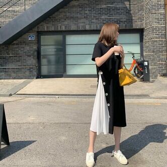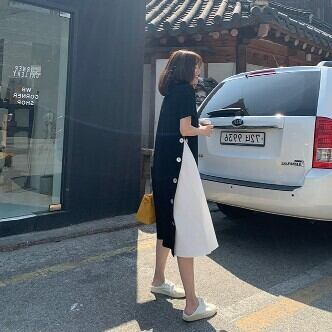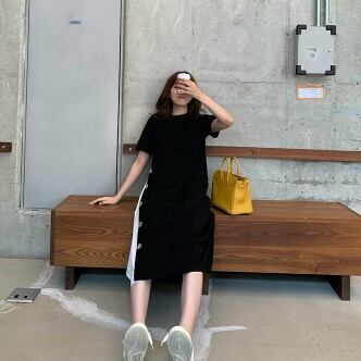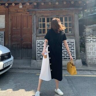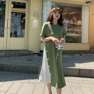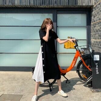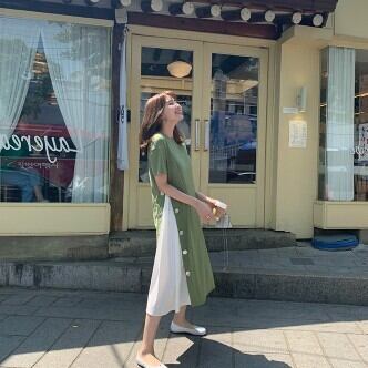 ワンピース レディース ミモレ丈 Aライン ボタン バイカラー 切り替え ワンピ おしゃれ 大人可愛い 半袖 個性的 レトロ フェミニン きれいめ ゆったり オーバーサイズ プラスサイズ 大きいサイズ XL 2XL 3XL 4XL ラウンドネック 襟なし ブラック 黒 グリーン 緑 くすみカラー 大人かわいい こなれ感 インスタ映え アイテム 韓国 ファッション 大人カジュアル 休日 公園デビュー お出かけ 主役級 10代 20代 30代 夏 トレンド 抜け感 楽ちん 女の子 プレゼント 安い お得