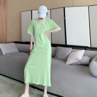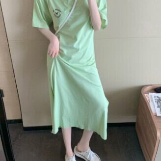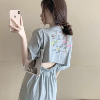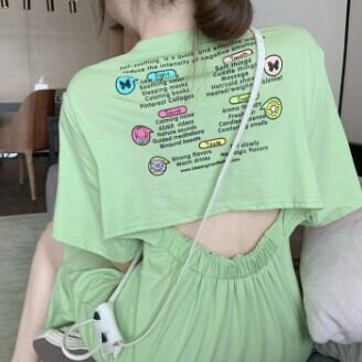 ワンピース レディース Tシャツワンピ ロング スリット ラウンドネック 半袖 バックシャン 背中空き ワンポイント バックプリント おしゃれ グレー 緑 グリーン カジュアル 可愛い ゆったり こなれ感 M L XL 2XL 3XL コーデ 通勤 学生 10代 20代 30代 春 夏 トレンド インスタ映え 韓国 ファッション お揃い 個性的 普段着 デート 旅行 ママ 公園 女子会 着回し お洒落 存在感 主役級 ガーリー ゆる とろみ感 かわいい 女の子プレゼント 安いお得 合わせやすい 低価格