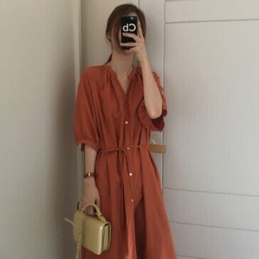 ロングワンピース シャツワンピース ワンピース レディース きれいめ シンプル カジュアル 綿 緑 オレンジ シャツ ロング フレア 半袖 五分袖 Vネック 無地 春 夏 秋 10代 20代 30代 40代 大人カジュアル ワンピース コーデ 通勤 OL オフィス ママ 楽ちん おしゃれ スタイル ワンピ グリーン こなれ感 ラフ感 ルーズ クール 個性的 モダン トレンド 韓国 ファッション レディース ワンピース 女の子プレゼント 安いお得 合わせやすい 低価格 コスパ 値段重視 低予算 インポート