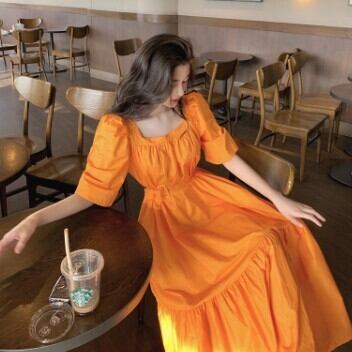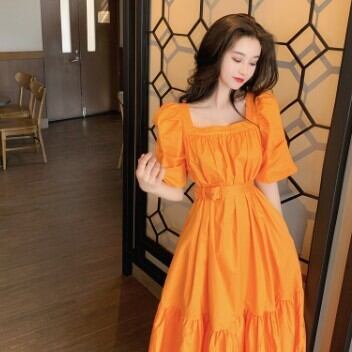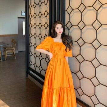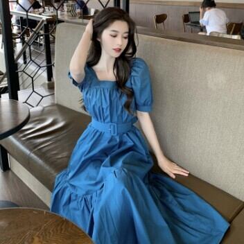 ワンピース レディース ミモレ丈 フレア ティアード パフスリーブ ワンピ 大人可愛い おしゃれ 無地 ロングワンピース スクエアネック 襟なし ベルト 裾フレア 半袖 無地 ワンピースドレス リッチ かわいい きれいめ 清楚 華やか 存在感 姫 レトロ S M L 白 ホワイト ブルー 青 オレンジ ブラック パーティー こなれ感 インスタ映え アイテム 韓国 ファッション お出かけ イベント 主役級 10代 20代 春 夏 ワンピドレス 清楚 イメチェン 好感度 イメージアップ 外国 注目 大特価