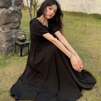 このワンピースは、特別な日だけでなく普段使いにもぴったりの楽ちんアイテム。あなたのファッションスタイルをワンランクアップさせること間違いなし。夏場にも涼しく着こなせる素材で、色もブラックで合わせやすいため、着回し力も抜群です。