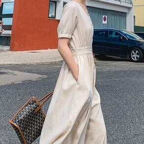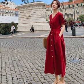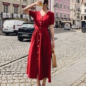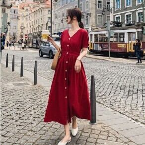 ワンピース ロング丈 袖あり 半袖 Vネック 襟なし ウエストマーク ハイウエスト 女の子 プレゼント 個性的 かわいい きれいめ シンプル カジュアル 上品 おしゃれ 大人可愛い 大人女子 こなれ感 個性的 セクシー エレガント 存在感 無地 春 夏 10代 20代 レディース 女性用 OL 通勤 学生 通学 デート お出かけ 女子会 お泊まり 休日 パーティー イベント ホテル 着回し 普段使い ファッション コーデ スタイル モテ 体型カバー プレゼント サイズ S M L 色展開 レッド ベージュ