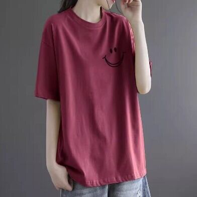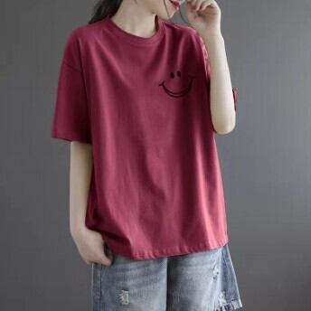 一枚で主役級に着こなせる無地デザインは、スマイルのロゴが胸元に入ったアクセントカラーを揃えました。ママや学生、40代以上の大人女子まで幅広い年代の方にオススメです。重ね着や体系カバーなど、様々なスタイルに合わせてお洒落に着こなせます。