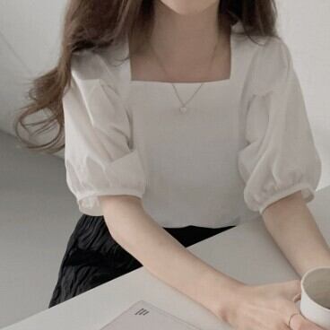 トップス ブラウス ミディアム丈 袖あり 五分袖 パフスリーブ 個性的 スクエアネック 襟なし ワイド タックデザイン 大人可愛い きれいめ シンプル カジュアル 大人 上品 お洒落 大人女子 こなれ感 ラフ ガーリー エレガント 主役級 抜け感 無地 春 夏 秋 20代 30代 40代 ママ 通勤 通学 デート お出かけ 女子会 休日 旅行 着回し 普段使い 重ね着 オルチャン 楽ちん モテ 定番 トレンド 流行 インスタ映え S M L XL ゆったり ブルー ブラック ホワイト 女の子プレゼント