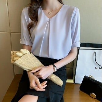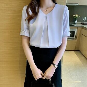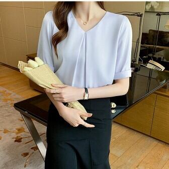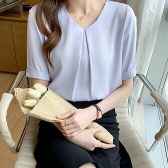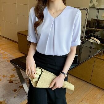 トップス ブラウス シフォンブラウス 白トップス ミディアム丈 個性的 袖あり 5分袖 Vネック ワイド シフォン フロントタック 透け感 薄手 大人可愛い きれいめ シンプル カジュアル 大人 上品 お洒落 大人女子 こなれ感 ラフ ガーリー エレガント 主役級 とろみ感 抜け感 無地 春 夏 秋 20代 30代 40代 ママ 通勤 通学 デート お出かけ 女子会 休日 旅行 着回し 普段使い 重ね着 オルチャン 楽ちん モテ 定番 トレンド インスタ映え S M L XL 2XL ブルー ホワイト