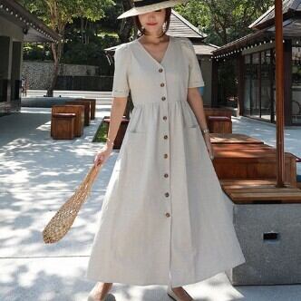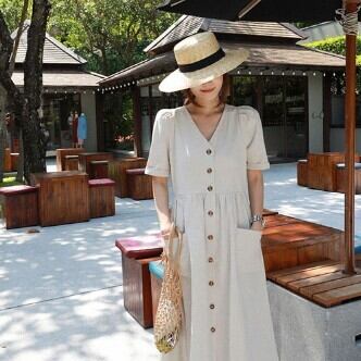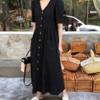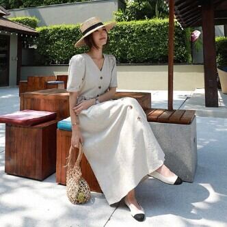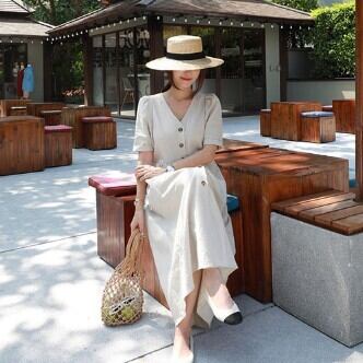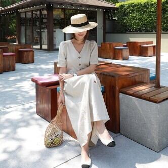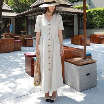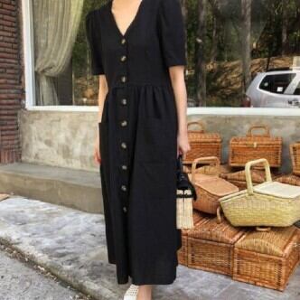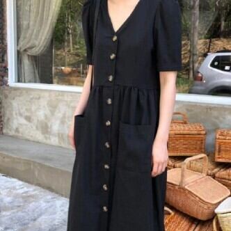 夏にぴったりの気分が上がる、ワンピースのご紹介です!何と言っても、ロング丈のデザインが魅力。ベーシックながらも、Vネックは女性らしさを引き立たせ、ハイウエストシルエットが足長効果を発揮してくれます。袖ありなので、肩や二の腕もカバーしてくれるのも嬉しいポイント。薄手の素材なので、夏でも軽やかに着こなせます。