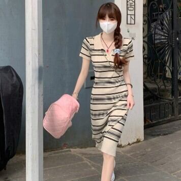 リブワンピース 膝下ワンピース 膝下スカート 袖あり 半袖 スリットネック 個性的 襟あり スリム タイト 細身 ストレート スマート 大人 シンプル カジュアル キュート おしゃれ お洒落 かっこいい 大人可愛い スポーティー クールボーダー 春 夏 秋 冬10代 20代 30代 40代 レディース 女性用 通学 デート お出かけ 女子会 休日 イベント リゾート 旅行 クリスマス 着回し 普段使い お揃い 韓国 韓国系 ファッション S M L XL アプリコット 女の子プレゼント 安いお得